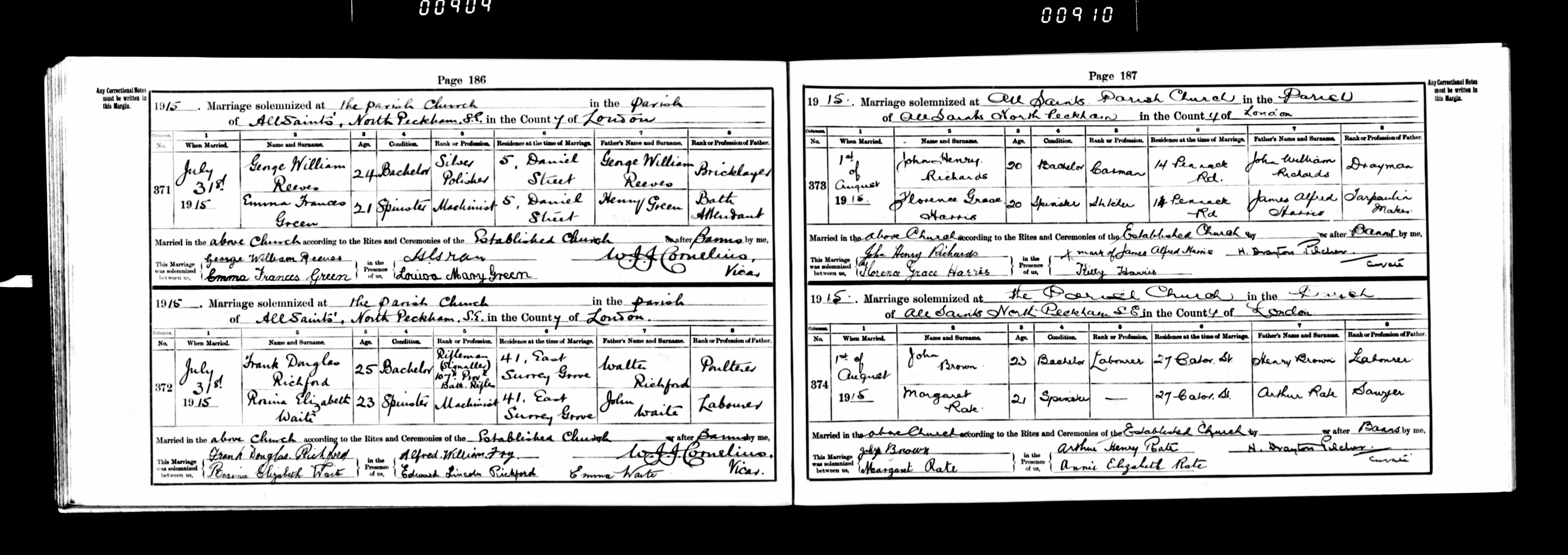 CharlesClaireauxMFlorrieGreen29Nov1920Camberwell.jpg