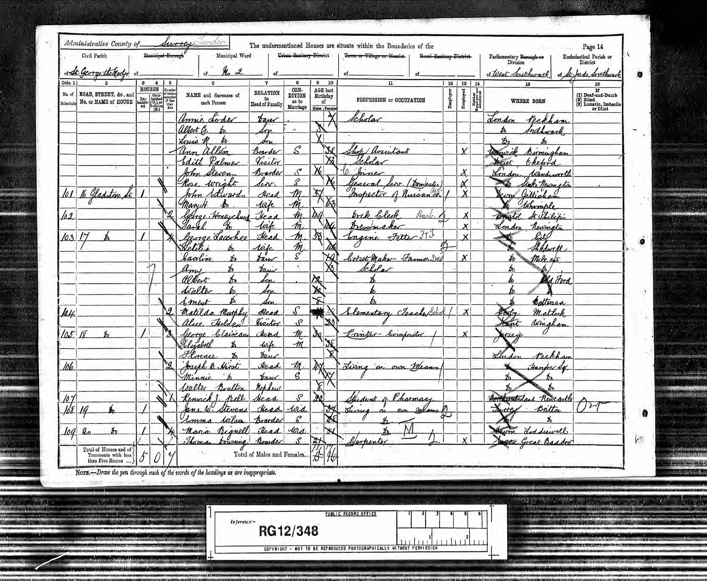 georgeclaireaux1901EnglandCensus.jpg
